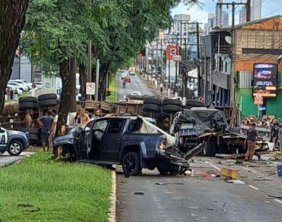 Um grave acidente de trânsito envolvendo diversos veículos foi registrado na tarde desta sexta-feira (30) na avenida Fernando Machado, no bairro Líder, em Chapecó. De acordo com informações do ClicRDC, um caminhão carregado de madeira perdeu o controle e colidiu com vários carros no local.