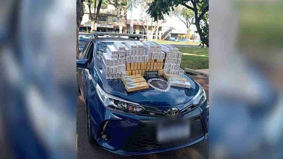 Durante a verificação, os agentes encontraram as caixas de cigarros, oriundas do Paraguai, em posse do suspeito.